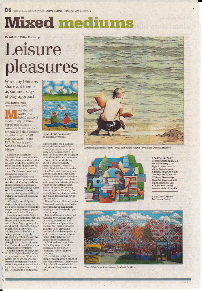 Featured artists include Ron Anderson (Columbus), Donna Coleman (Oberlin), Diana Duncan Holmes (Cincinnati), Carol Griffith (Orient), Helma Groot (Columbus), Jay Robert Johnston (Marion), Linda Langhorst (Columbus), Bellamy Printz (Cleveland), Vicki Rulli and Tom Heaphey (Springfield), Jessica Summers (Findlay), Stephen Tomasko (Akron), and Eileen K. Woods (Columbus).