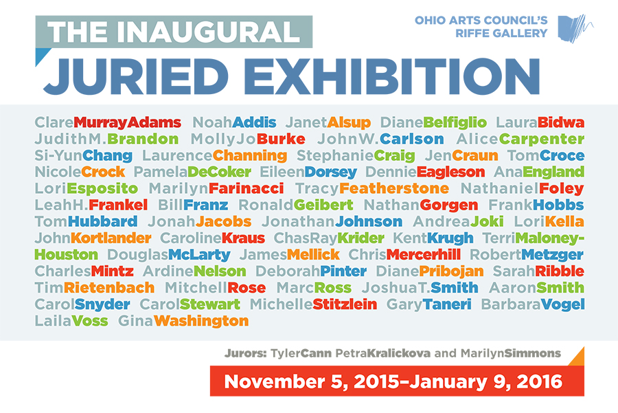 Ohio artists (not enrolled in a degree-granting program, age 18 and older) were invited to submit up to three artworks in a statewide call for entries. Nearly 400 applications were submitted in a wide range of media including drawing, painting, photography, printmaking, ceramics, mixed media, and video. Exhibition jurors Tyler Cann, Columbus Museum of Art, Columbus; Petra Kralickova, formerly of Ohio University, Athens; and Marilyn Simmons, SPACES, Cleveland selected artwork by 59 artists.